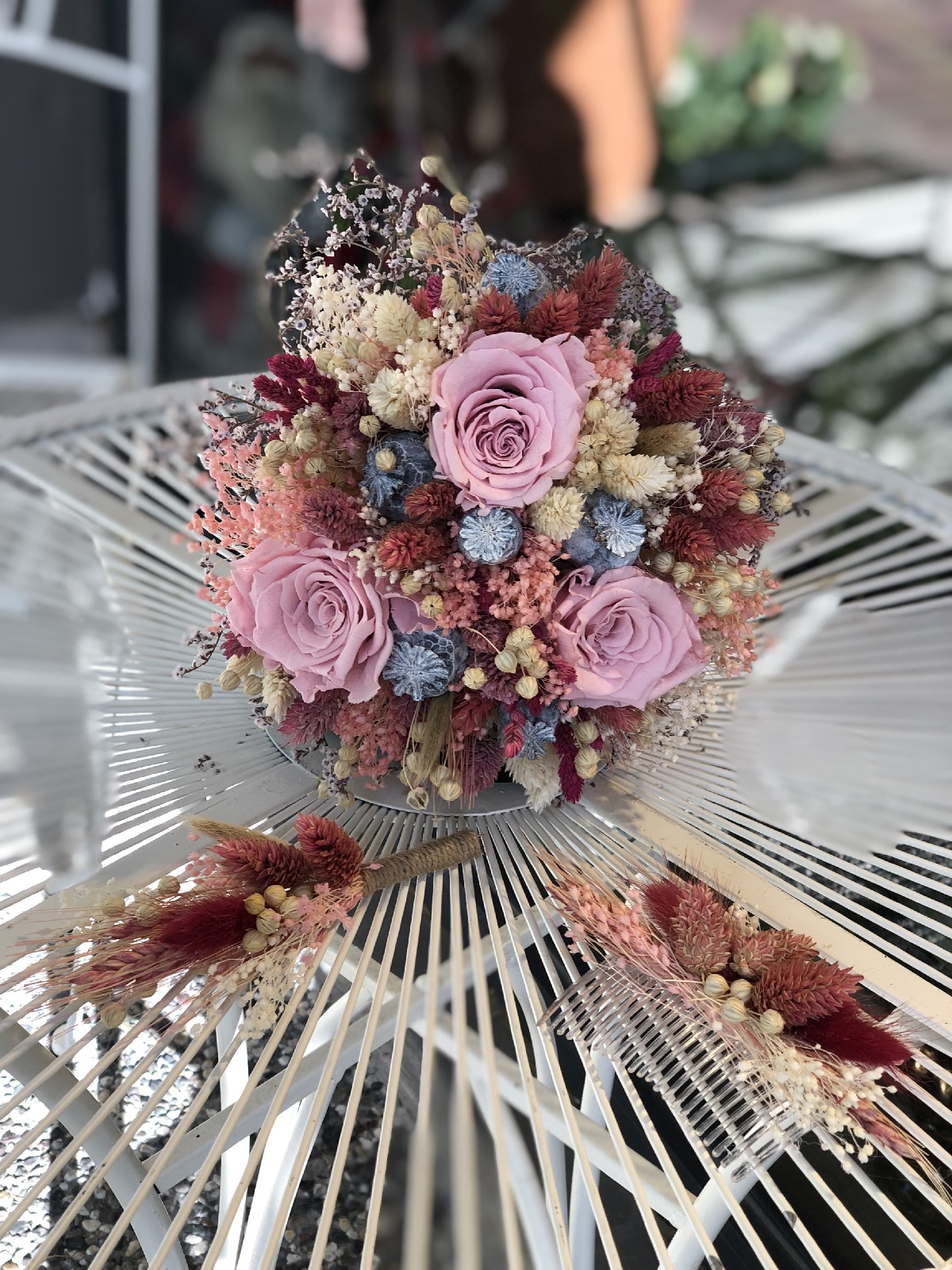 Mor Kuru Ciceklerden Gelin Buketi El Cicegi Yaka Cicegi Hediye